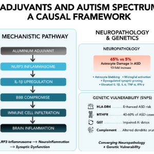 Autism is a largely immune mediated condition, and the purpose of a vaccine is to change the behavior of the immune system. Vaccines and their ingredients can cause the underlying medical conditions that are commonly found in children who have been given an autism diagnosis. These conditions include immune system impairment, autoimmune conditions, neuroinflammation, gastrointestinal damage, neurological regression, mitochondrial dysfunction, oxidative stress, glial cell activation, interleukin-6 secretion dysregulation, damage to the blood–brain barrier, seizures, dendritic cell dysfunction, mercury poisoning, aluminum toxicity, gene activation and alteration, glutathione depletion, impaired methylation, impaired thioredoxin regulation, impairment of the opioid system, cellular apoptosis, endocrine dysfunction, and other disorders.